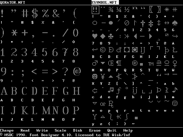 Complete set of low (cft) and high (eft) resolution screen fonts, with screen drivers for